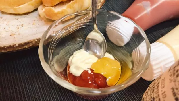 マヨネーズ、ケチャップ、マスタードを混ぜてソースを作ればもう完成間近!