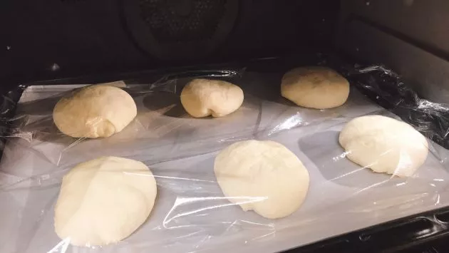 生地を分けて丸めたら、鉄板に乗せて二次発酵!
