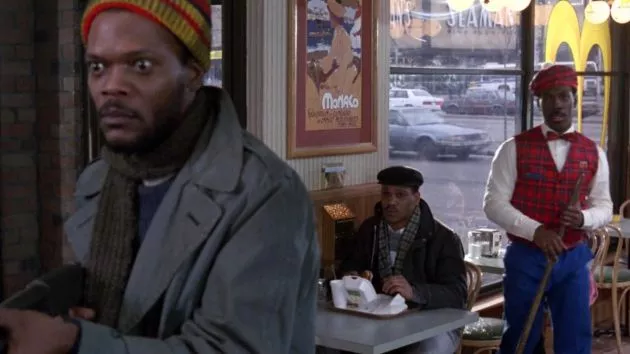 ちなみにエディ・マーフィーと、セミを演じたアーセニオ・ホールはなんと一人四役を演じています。無駄に変装のクオリティが高いので言われるまで全然気づけないし、メインキャスト二人が四役こなす必要がどこにあったのか全く分からないのですが、面白いからOK!悪ノリの延長の様な雰囲気で楽しく撮影してる様子が目に浮かびます。
