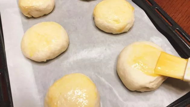 一度取り出して表面に卵を塗ったらオーブンで焼きます。