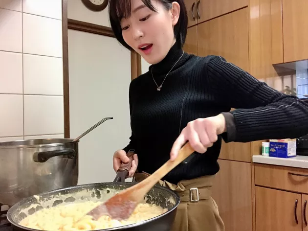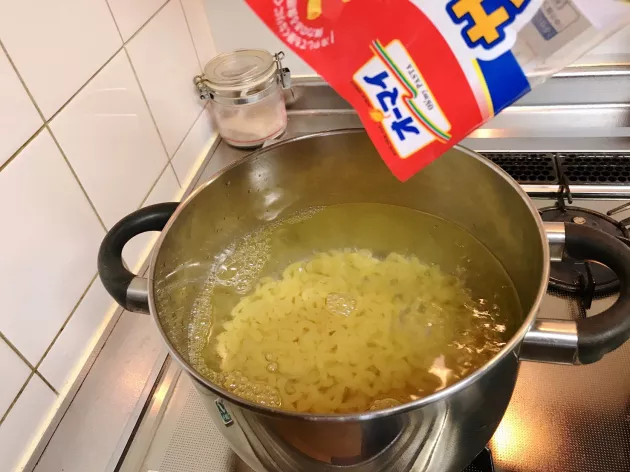 ソースづくりと同時にマカロニを茹でておきます。