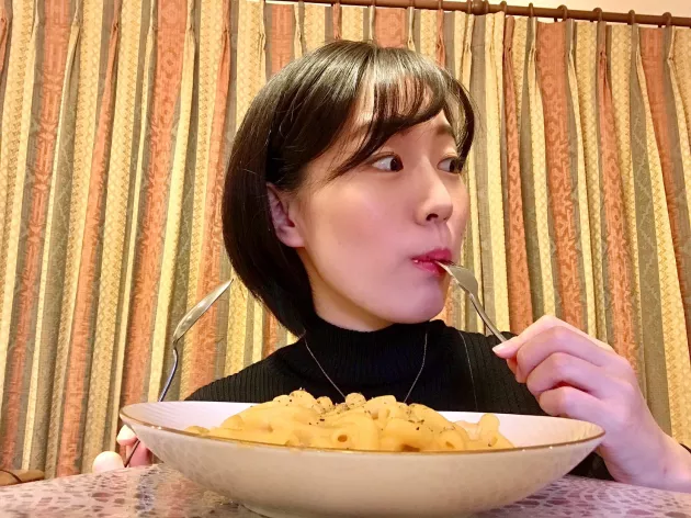 一口食べてみると、これは子供が大喜びするやつ!!と思いました!スパゲティなどの他のパスタよりはるかに口に入れやすく、パクパクと口に運んでしまい、手が止まらなくなります。
