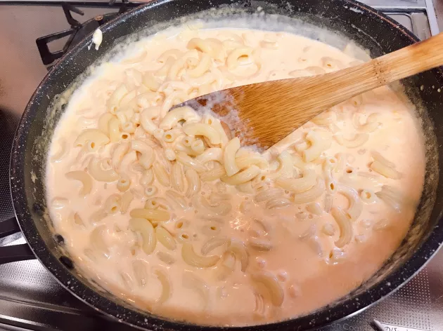 チーズが溶けて完全にソースになじんだらOKです。