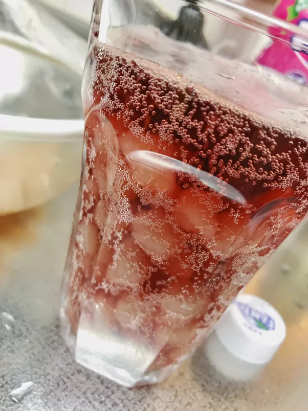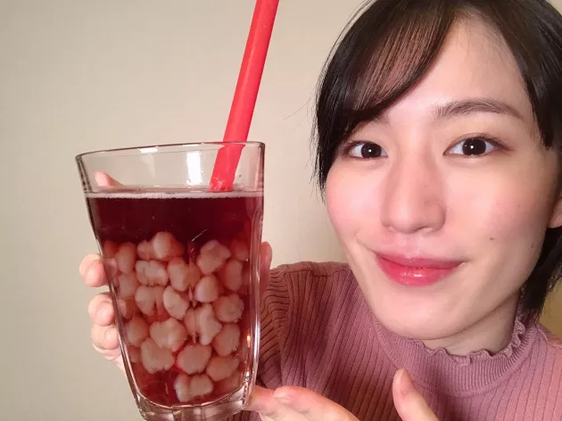 なんか白いし弾力が失われています。変な形で逆に不気味で面白いのでこのままドリンクに。ファンタグレープを注ぎ込んで完成です!