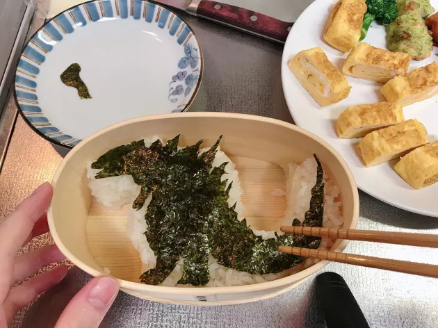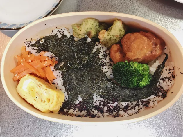 ゴジラキャラ弁もちゃんとできるか心配でしたが海苔が思ったよりも切りやすくて簡単でした!お弁当箱の蓋を開けた時にゴジラがいたらちょっと嬉しいですよね!
