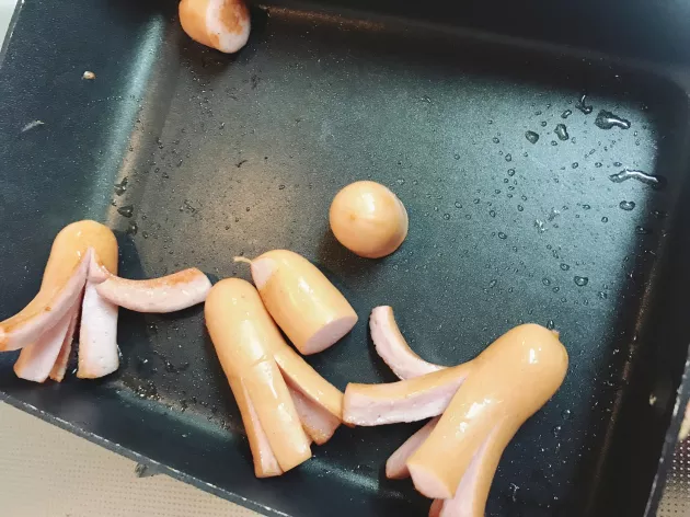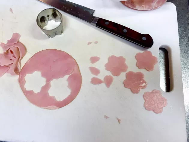 飾りのハムは桜の形のクッキー型で切り抜きます。