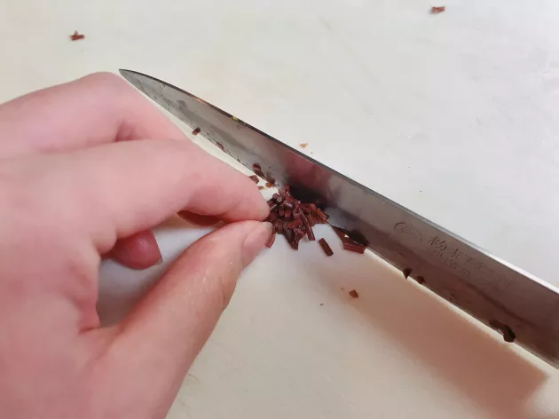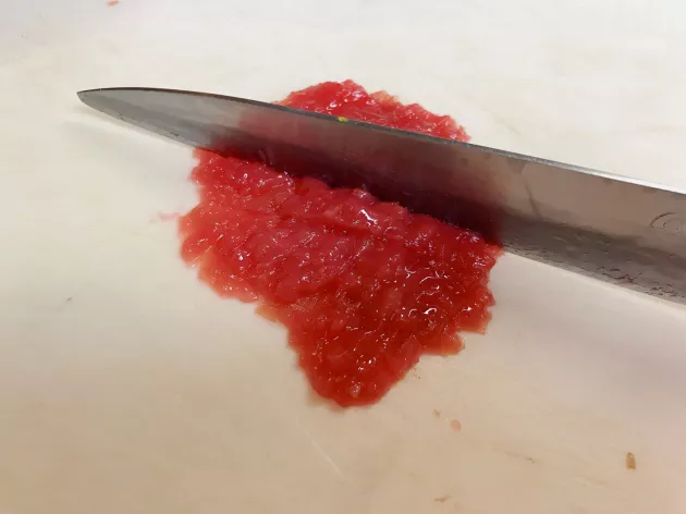 塩漬けを水で戻したら花を分けておき、茎をみじん切りにします。