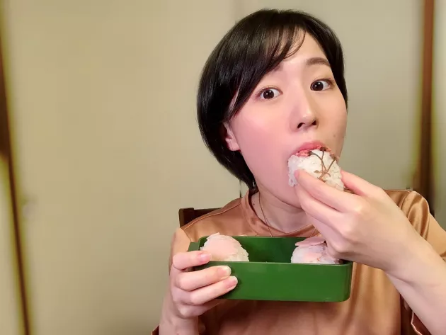 おにぎりが想像以上に美味しいです!梅干しを入れているのでちょっとだけ酸味があり、桜の香りが優しく口に広がってお花見にぴったりな味です。