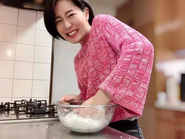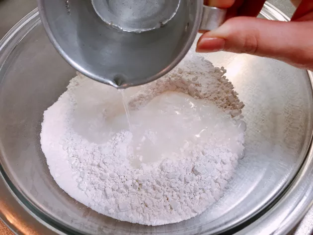 少しづつ水を入れながら混ぜていき、ひとまとまりになるまで捏ねます!