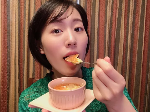 甘くて香ばしいおこげと、普通のプリンよりも濃厚でトロトロなプディングが最高の組み合わせ!プリンというよりクリームに近いような滑らかな舌触りと、口の中でバリバリッと割れるおこげの差も良いですね!