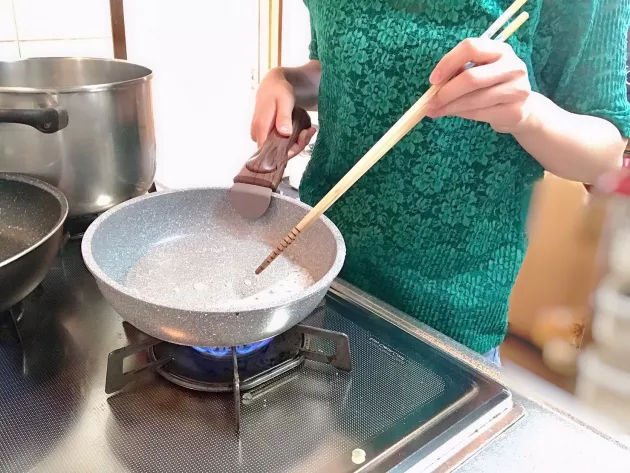 砂糖が溶けきる前に焦げてきて、なんともひどい見た目に。(笑)悔しいので上だけ剥がしてリベンジです。