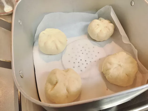 蒸したら二回りほど大きくなりました!パオの形のようにできたかな?