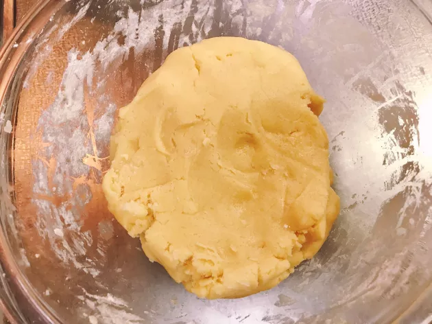 ふるった小麦粉を加えてひとまとまりになったら冷蔵庫でしばらく寝かせます。