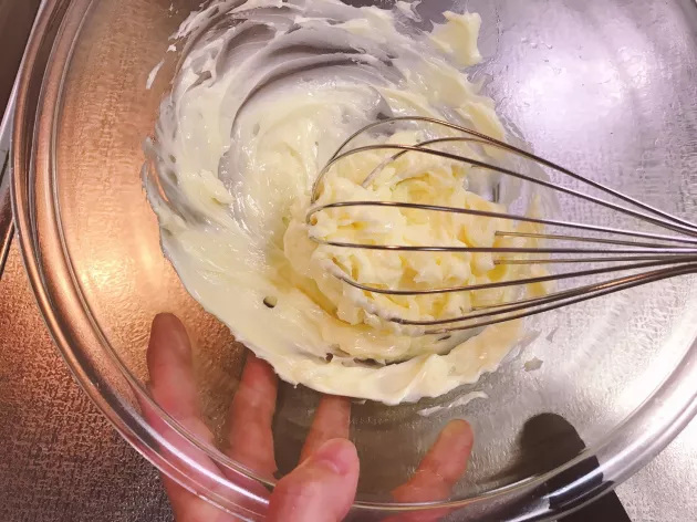 無塩バターを柔らかくし、しっかり混ぜて滑らかにしていきます。