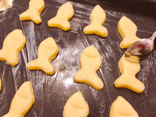 ただのシンプルなクッキーですが、お魚の形になると可愛らしいです!