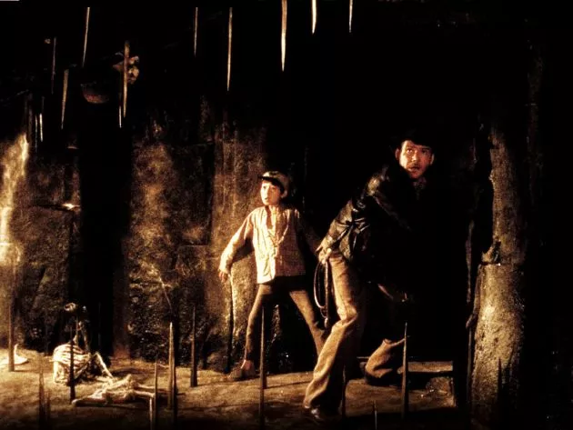 最初から最後まで楽しい作品ですが、あえて一番印象的だったシーンを挙げると、それは虫のシーンです。インディとショート・ラウンドが宮殿の隠された通路を進むと、仕掛け部屋が現れます。そこはスイッチを押すと天井がジワジワと降りてきて中の人は潰されてしまう恐ろしい部屋です。しかも仕掛けを解除するには、部屋の外から第三者が虫だらけの穴に手を入れてスイッチを押さないといけないのです。