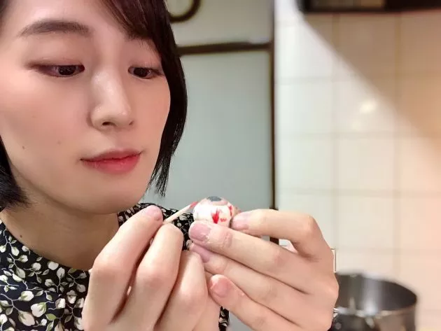 茹でて、目玉の完成です!