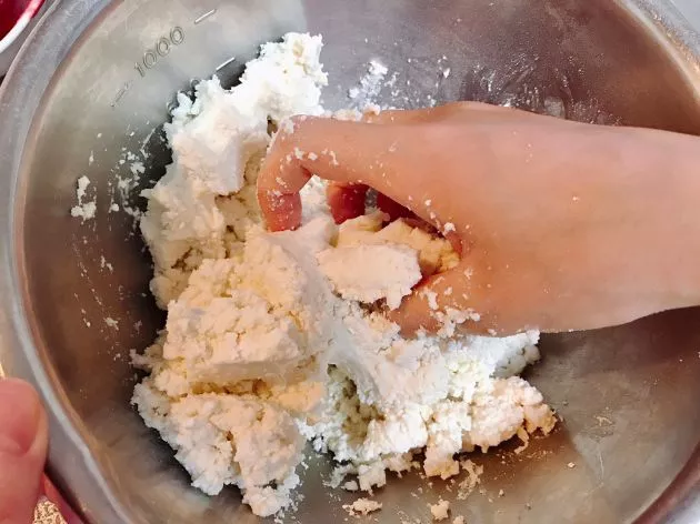 目玉は白玉団子で作ります。白玉粉と絹ごし豆腐を合わせて、耳たぶくらいの柔らかさになるまでこねます。