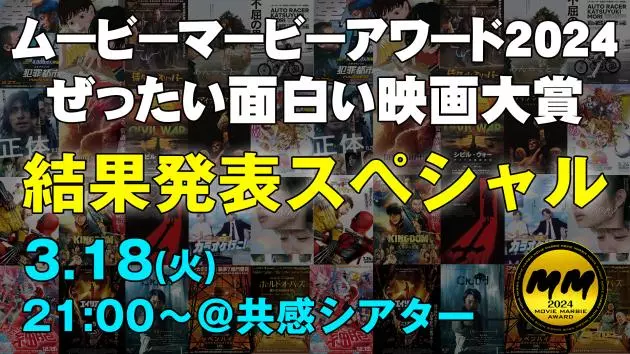 ムービーマービーアワード2024「ぜったい面白い映画大賞」結果発表スペシャル!3/18(火)共感シアターにて開催します!