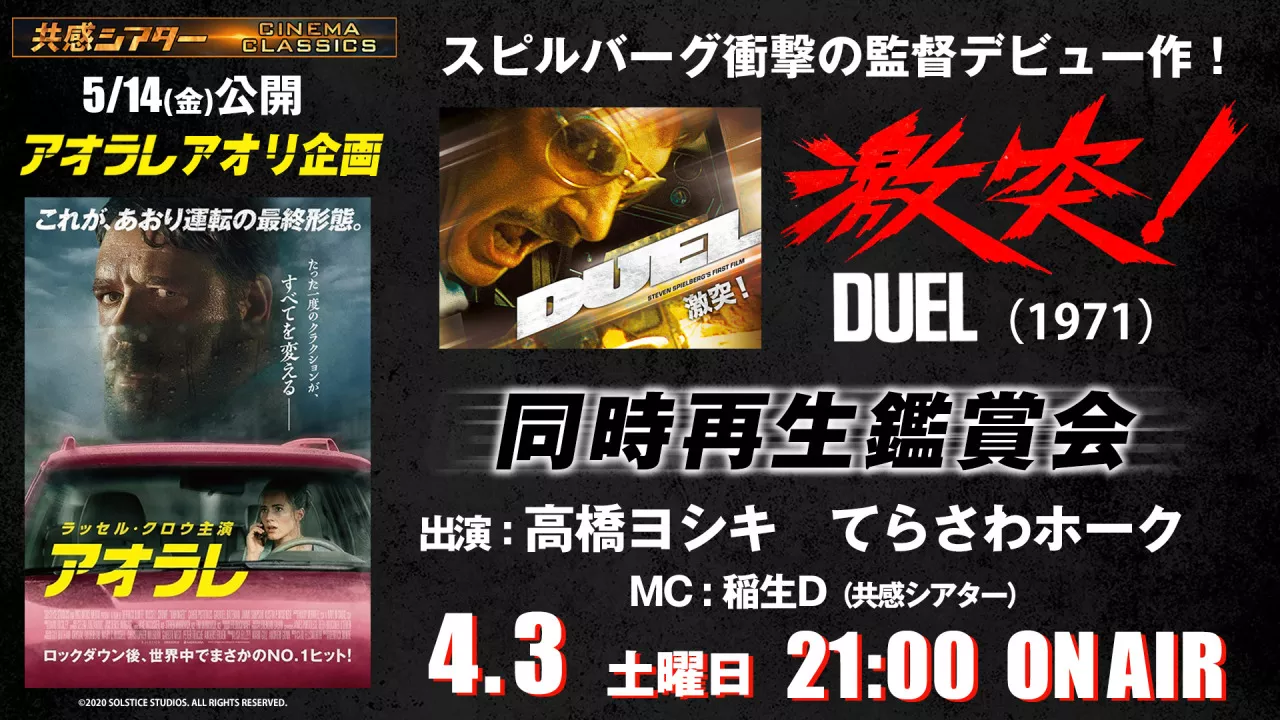 NEWS!4/3 21:00~【共感シアター】映画『アオラレ』公開記念! スピルバーグ『激突!』同時再生鑑賞会開催決定!! -