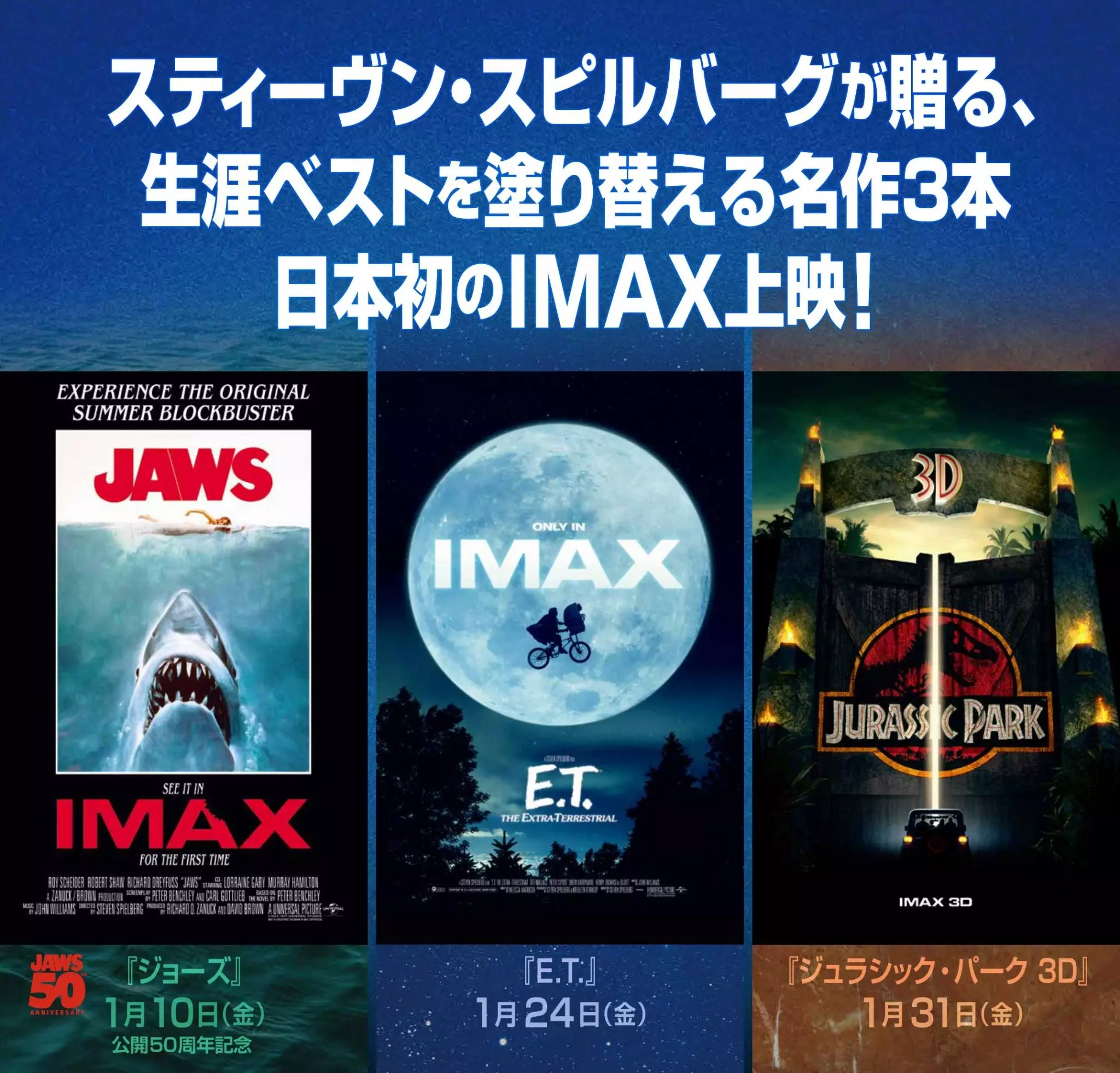 NEWS!『スティーヴン・スピルバーグ IMAX映画祭』2025年1月10日(金)より順次公開決定!『ジョーズ』『E.T.』『ジュラシック・パーク 3D』が IMAX版にて日本初上映! -